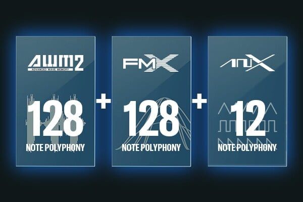 MODX M cung cấp lên tới 268 nốt đa âm trên ba bộ tiếng: