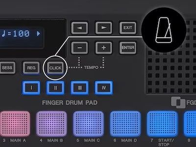 FGDP có tính năng Click tích hợp với bảy âm thanh có thể lựa chọn dễ nghe trong khi biểu diễn. Với chức năng Tap Tempo, chỉ cần chạm vào Pads để cho FGDP phát hiện Tempo, loại bỏ nhu cầu xác định BPM theo cách thủ công